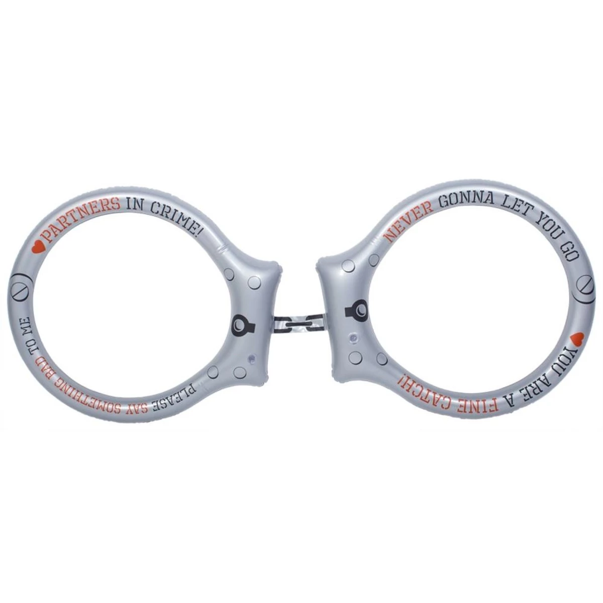 Hatalmas felfújható bilincs, borzongató feliratokkal. Tökéletes kiegészítése a rendőr jelmezednek!