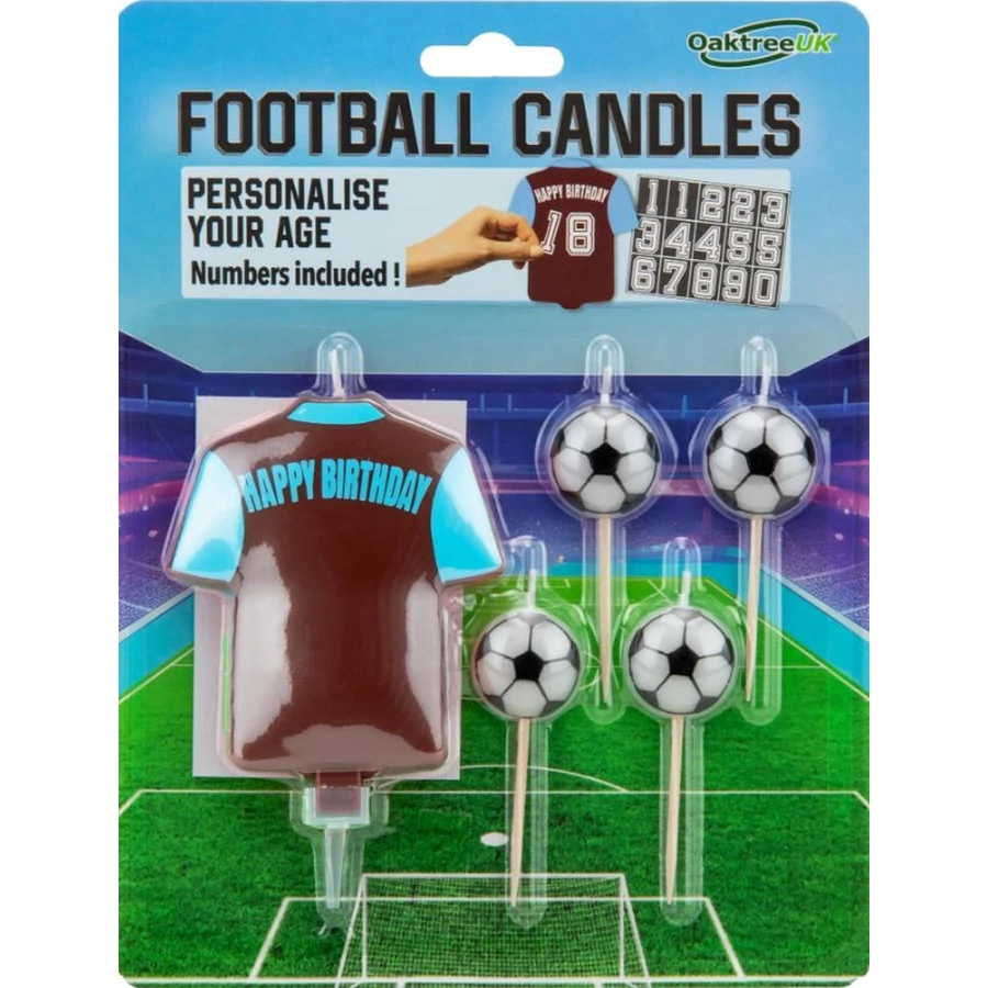 Számozható, barna-kék mezes tortagyertya focistáknak.
