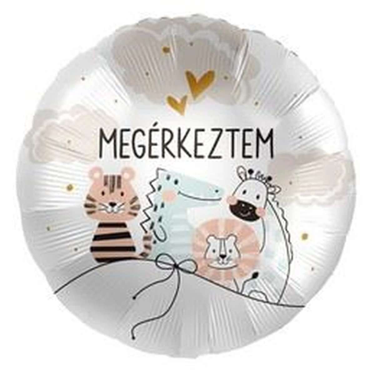 Fólia Lufi - 17"-es Babaváró Megérkeztem Feliratú Állat Mintás Léggömb