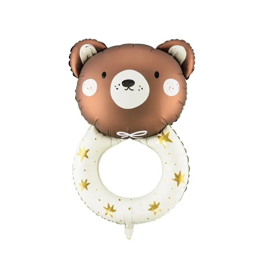 Fólia lufi Teddy csörgő. Fújja fel levegővel és héliummal. A készlet a lufit és egy szívószálat tartalmaz.