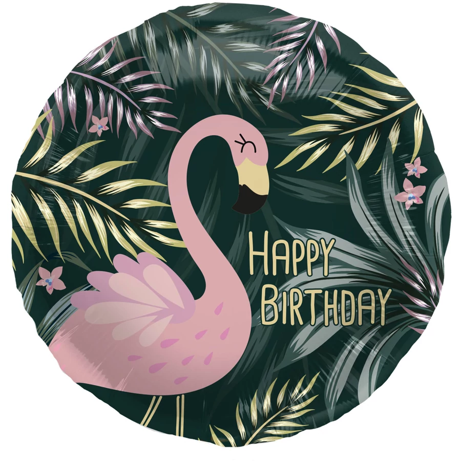 Fólia lufi születésnapi trópusi flamingó - 45 cm Héliummal