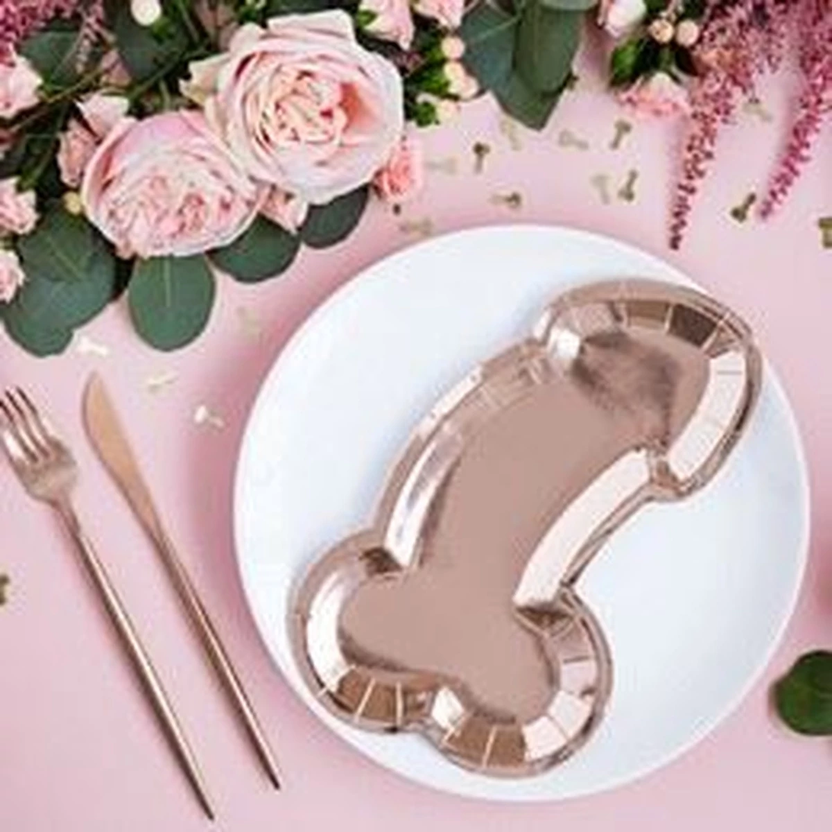 Rosegold Színű Fütyi Formájú Parti Tányér Lánybúcsúra - 6 db-os