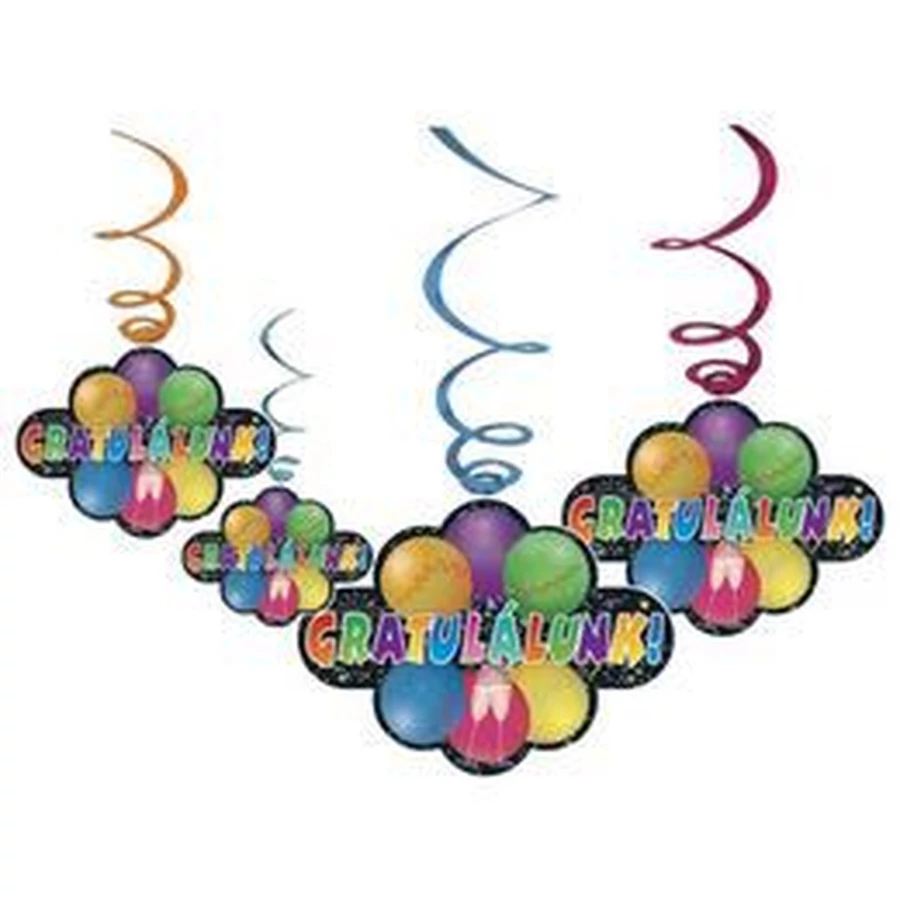 Színes, Gratulálunk! Feliratos Karton spirális függő dekoráció.