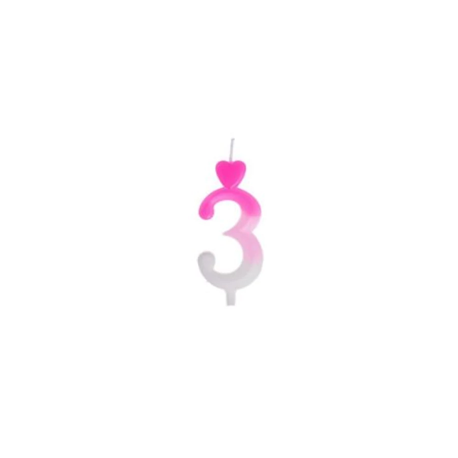 Gyertya - rózsaszín átmenetes számgyertya talppal ˝3˝ - 1db