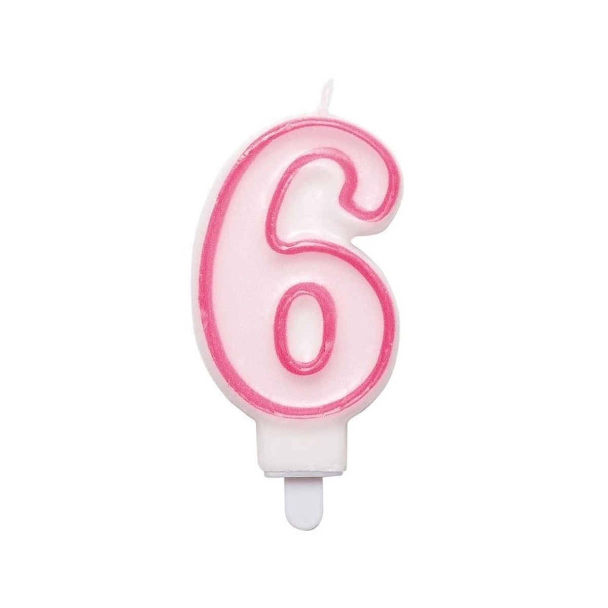 Gyertya - 6-Os Számos Rózsaszínű Szülinapi Számgyertya Tartóval