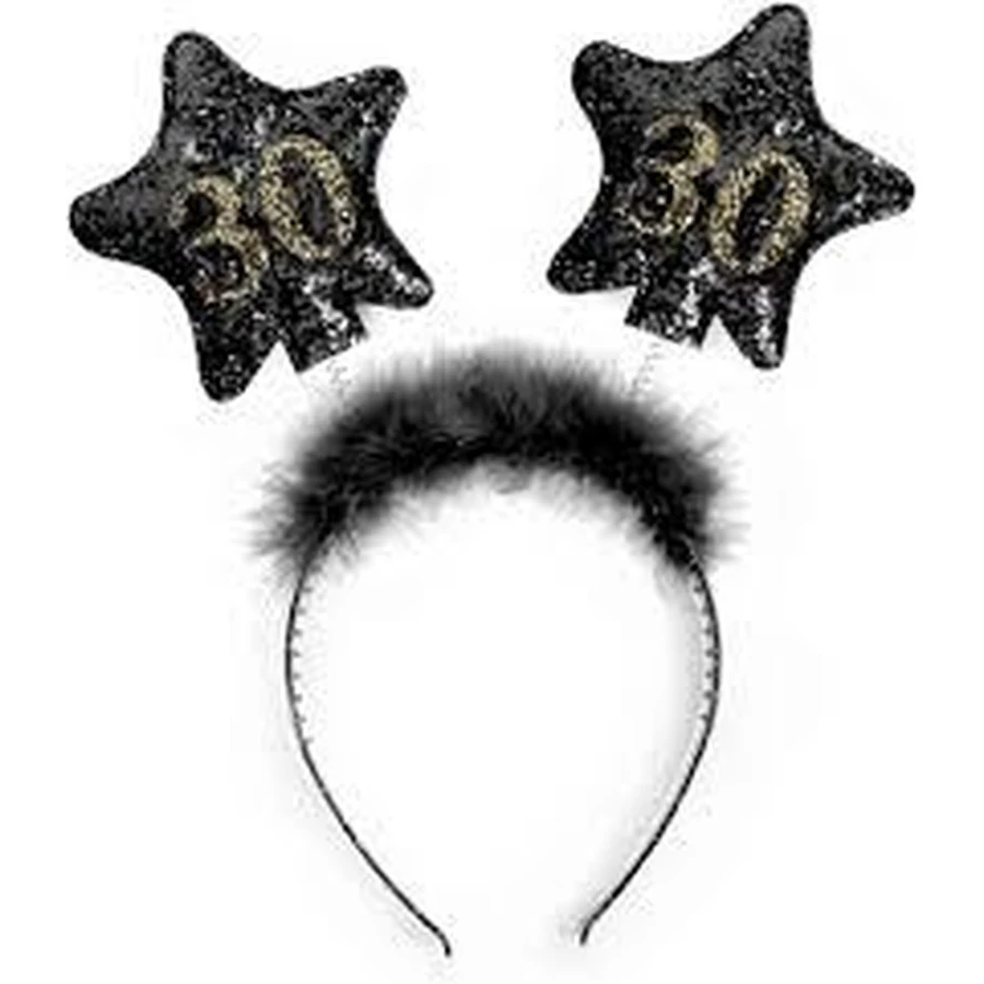 Csillogós, fekete-arany hajpánt 30-as számmal.