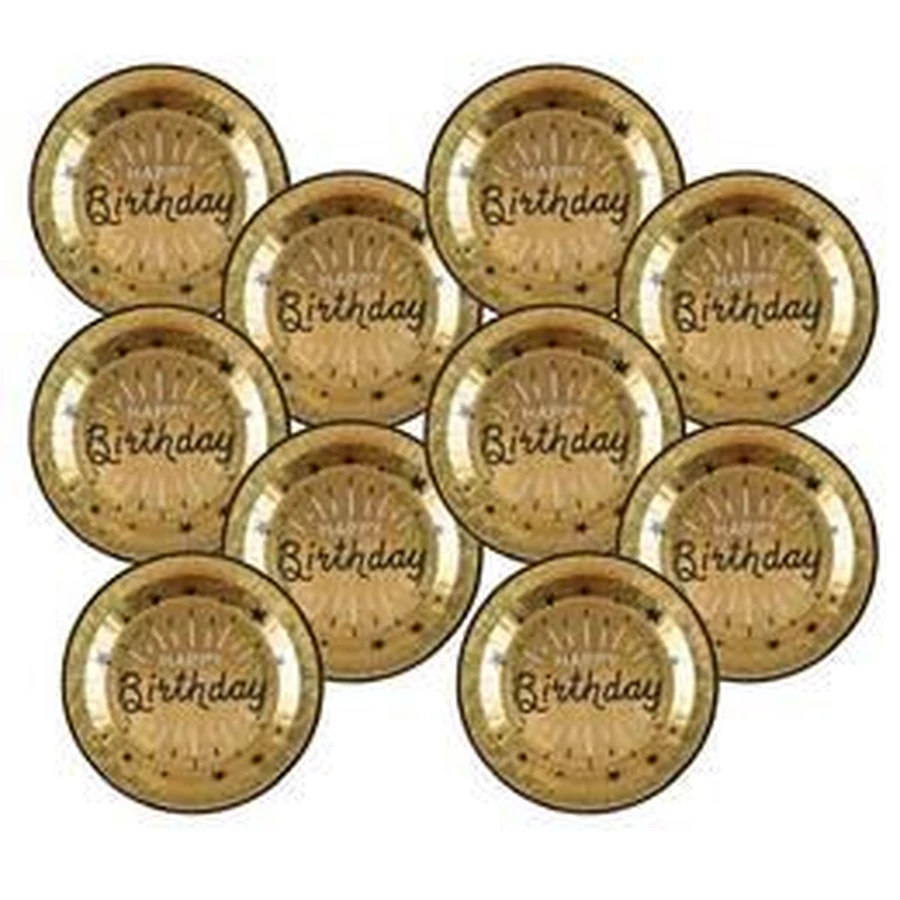 Happy Birthday Arany Fekete Szülinapi Parti Tányér - 23 cm, 10 db-os