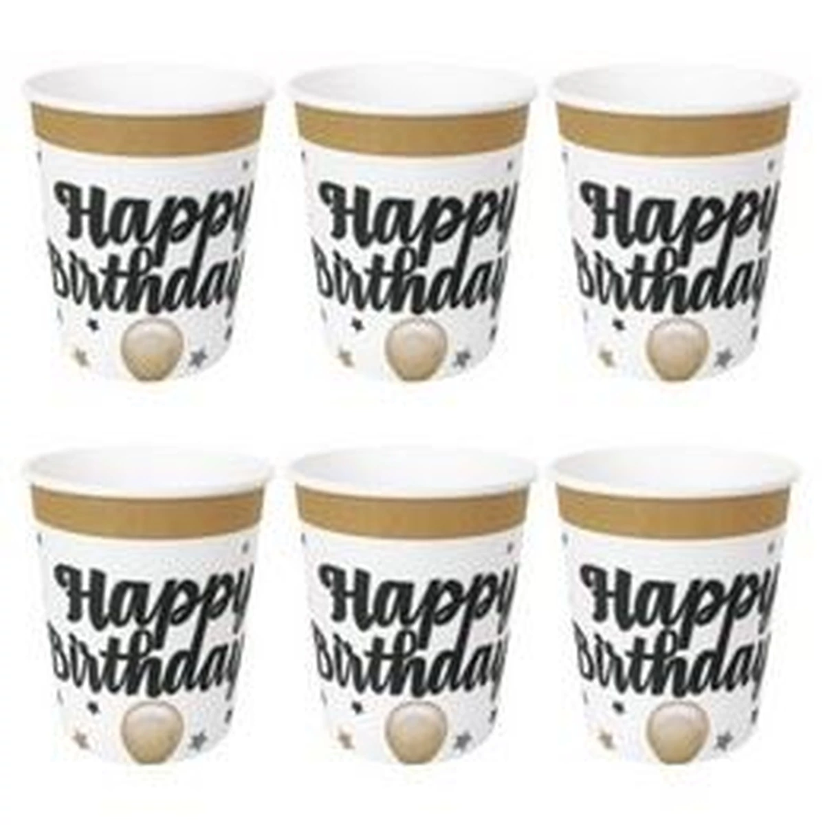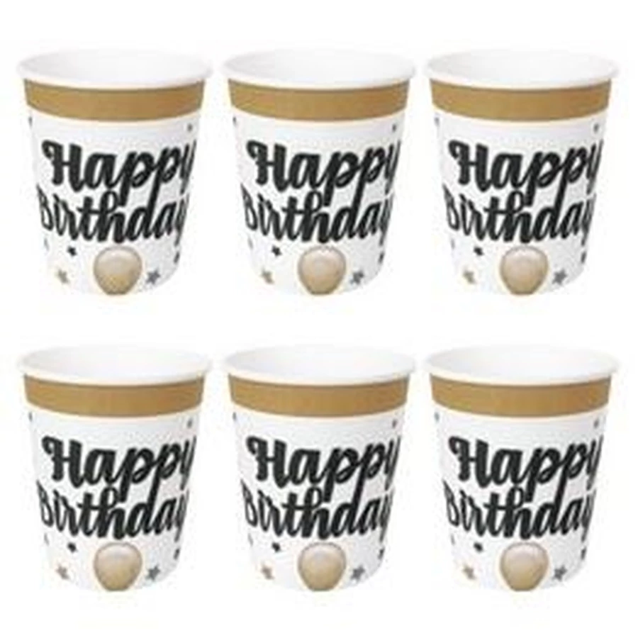 Happy Birthday! Feliratú Elegáns Léggömbös Szülinapi Papír Pohár - 250 ml, 6 db-os