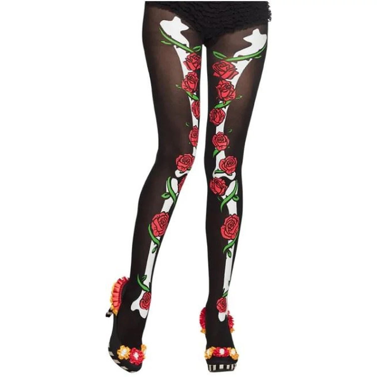 Halott menyasszony harisnyanadrág, csont és rózsa mintával. 40 DEN. Egyméretes.