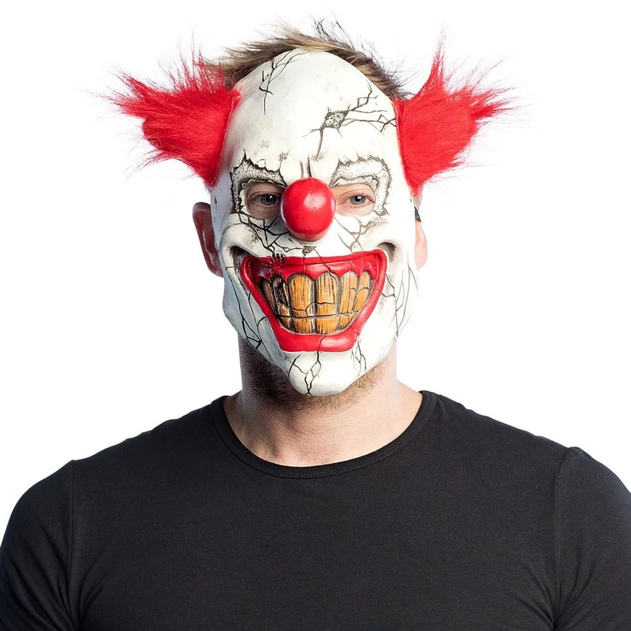 Mintha egy horror bohóc nem lenne elég ijesztő, ez a latex maszk még hátborzongatóbb törött porcelán megjelenésével és hátborzongató mosolyával.