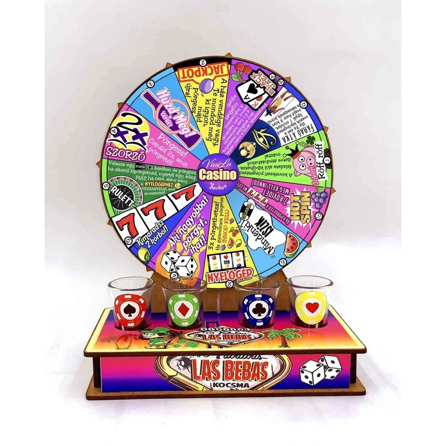 Ötletes és vicces piás társasjátékok a szobába vagy a szabadba. Ideális ajándék születésnapra, baráti összejövetelekre, vagy akár csajos buliba a barátnőkkel. Ha bulit tervezel a barátokkal, akik jófejek és a piát sem vetik meg, akkor mindenképpen válasz ezekből a játékokból a buliba, hogy tuti felejthetetlen röhögésekkel teli király buli legyen. Pörgessetek és kövessétek a szerencsekerék utasításait! ;-) Józanul nem marad senki!:) Fából készült vicces, italozós társasjáték, 4 db pohárral.
