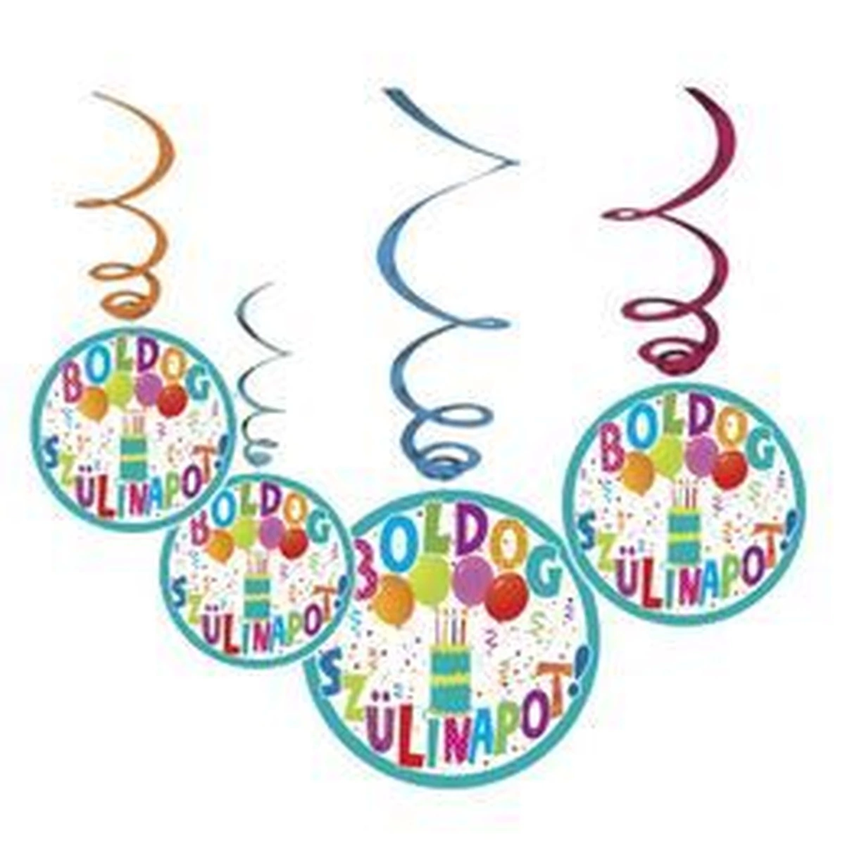 Színes, vidám szülinapi spirális függődekoráció. Tökéletes dekoráció bármely születésnapra.