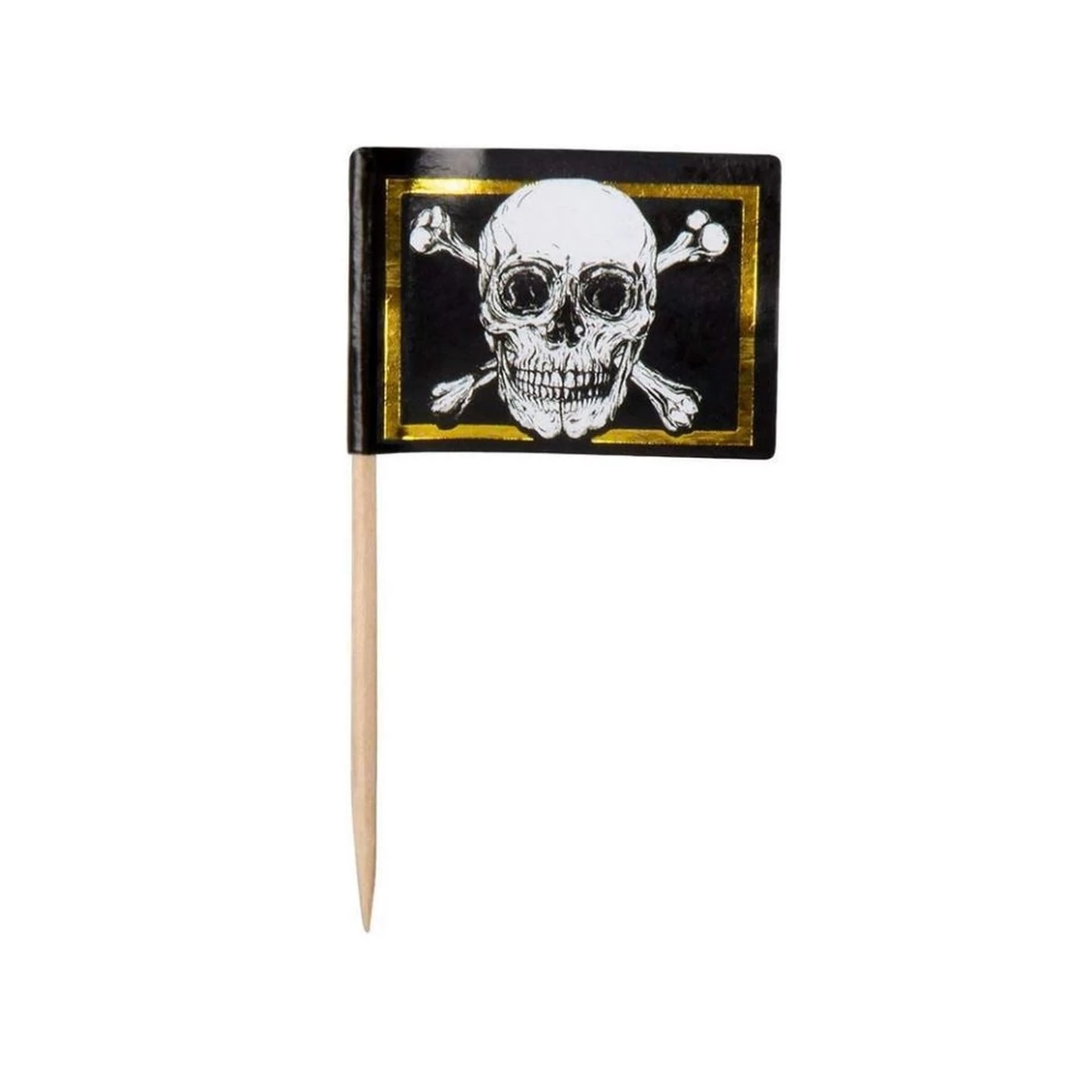 A csomag 24 darab kalózos zászlót tartalmaz. (7 cm)