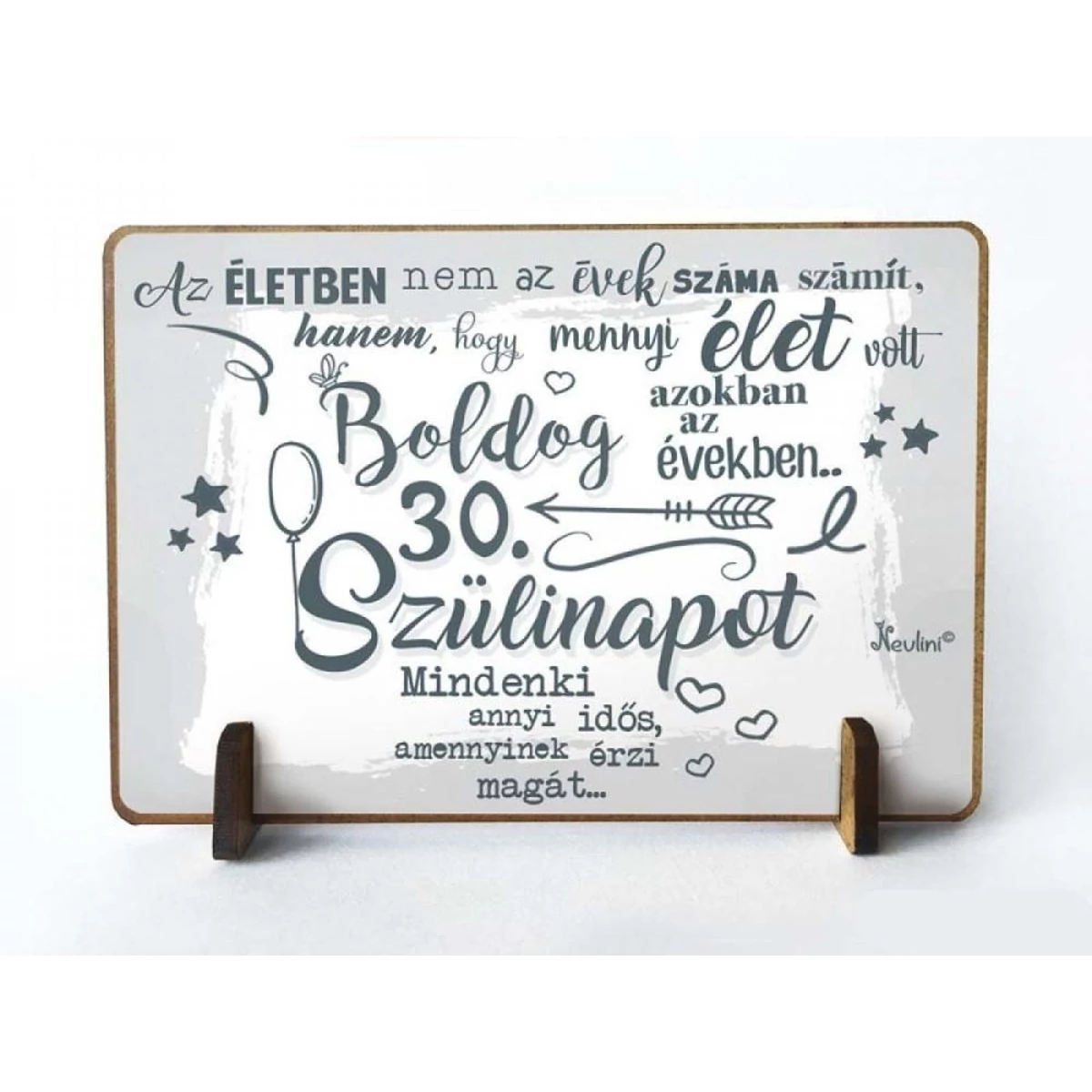 30. Születésnapi ajándék férfiaknak és nőknek. Mérete 11cm széles és 7,5cm magas. Anyaga, fa.