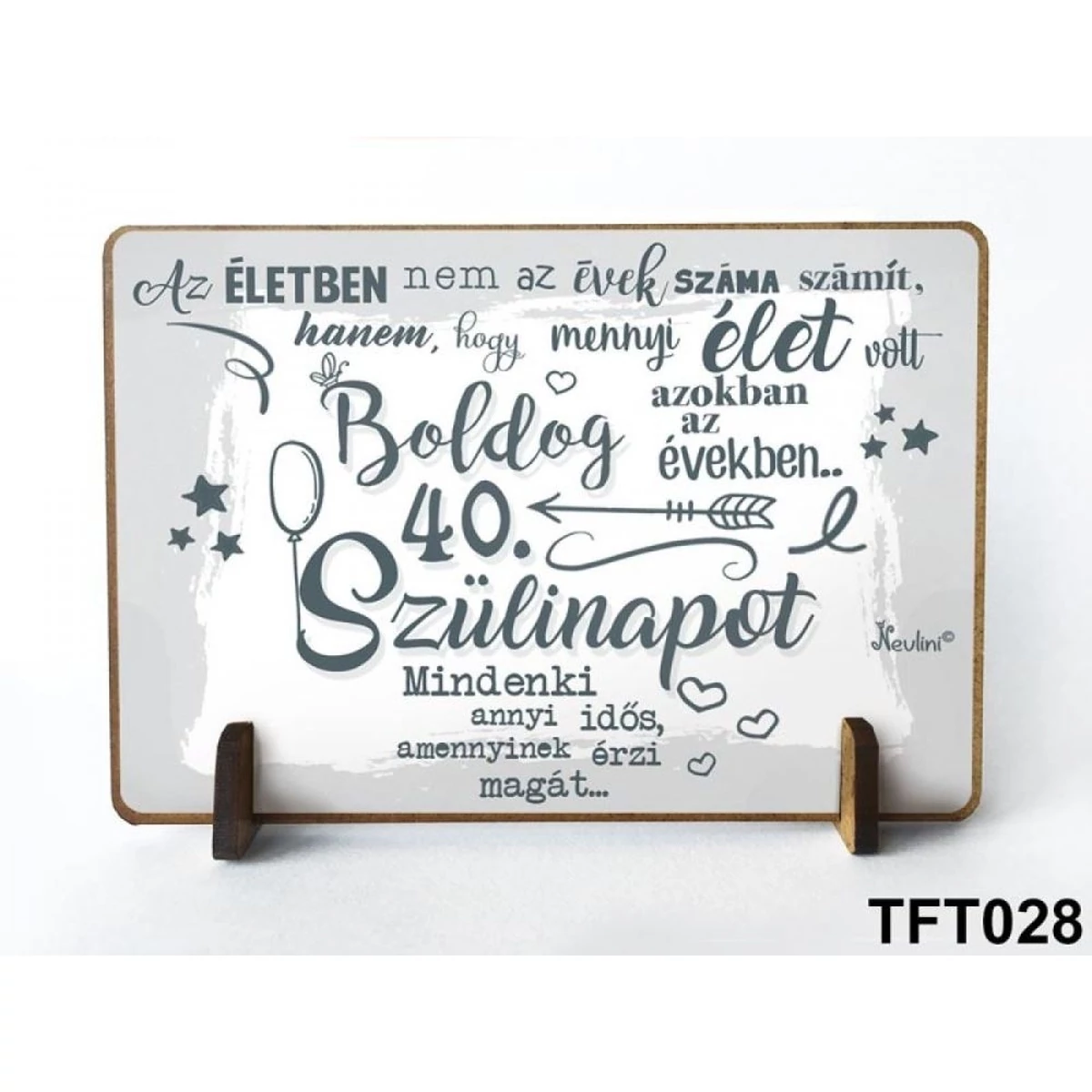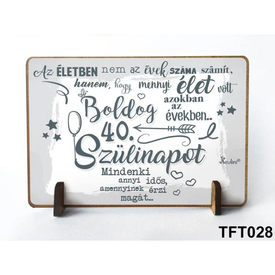40. születésnapi ajándék férfiaknak és nőknek. Mérete 11cm széles és 7,5cm magas. Anyaga, fa.