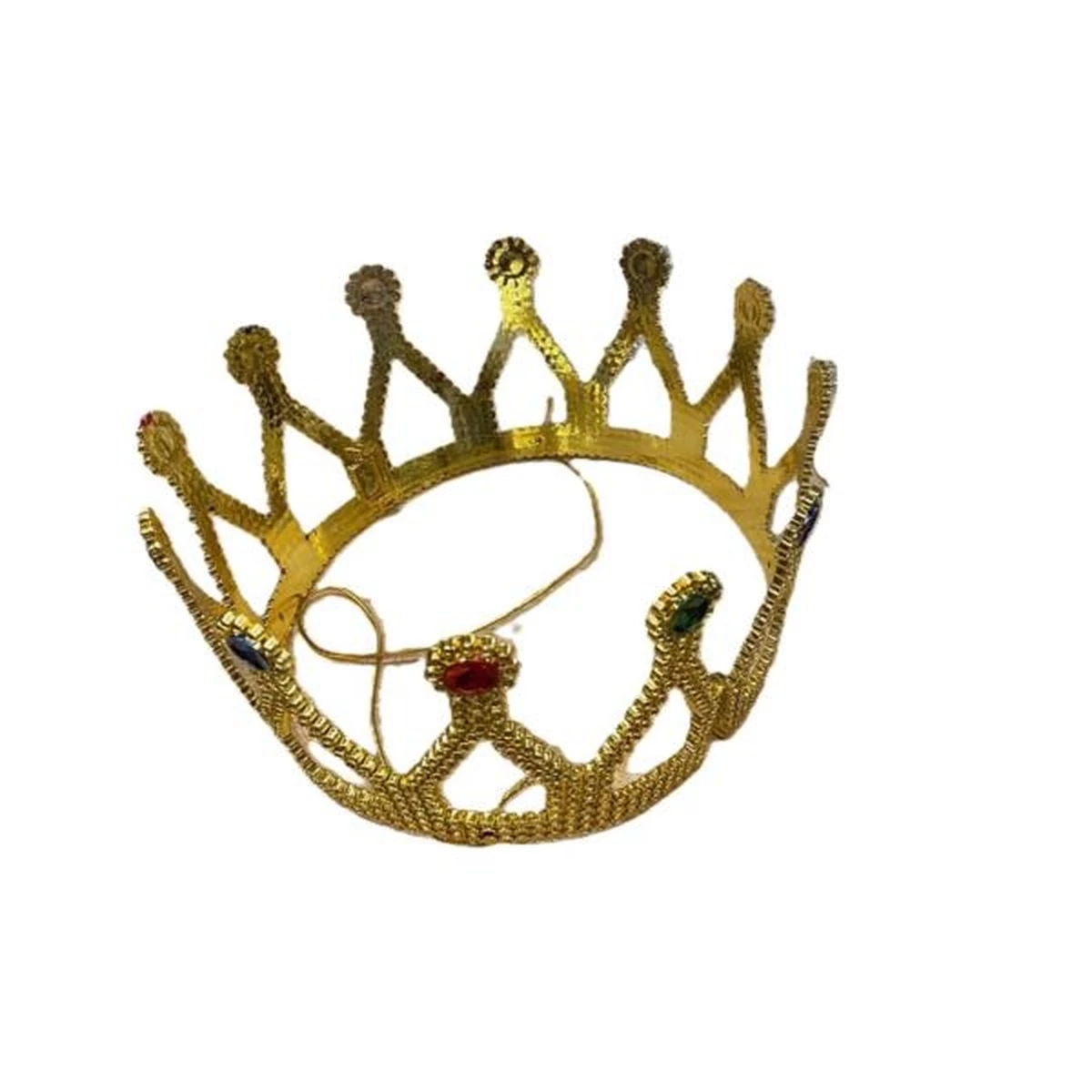 Jelmez kiegészítő királynőknek, vagy lánybúcsúra is kitűnő választás lehet, ez a színes kövekkel díszített, műanyag korona, arany színben.