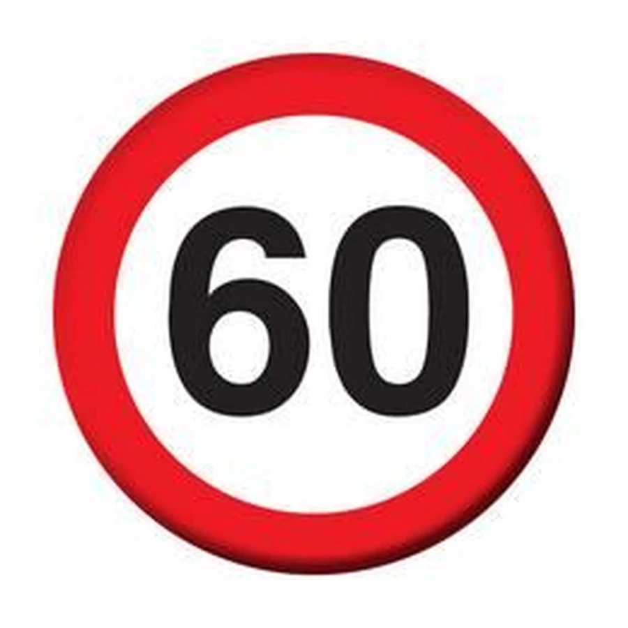 Sebességkorlátozó tábla mintás kitűző számmal.