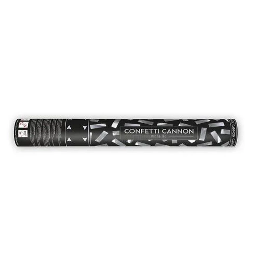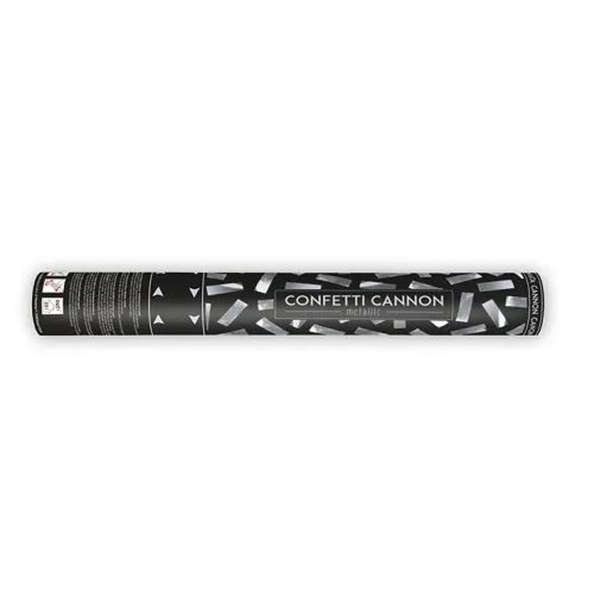 Ezüst/ fémes színű konfettit kilövő ágyú, hossza 40cm