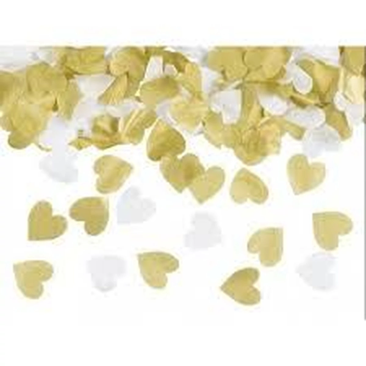 35 cm-es konfettiágyú, fehér és arany szívekkel töltött.