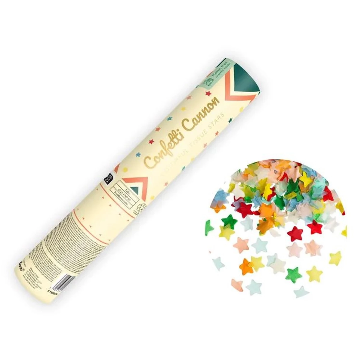 20 cm-es, színes csillagos konfettiágyú.