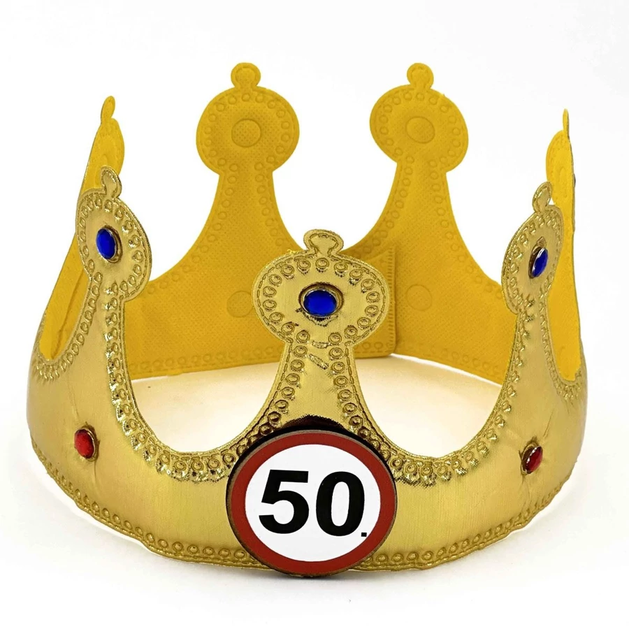 Születésnapi Party Kellék. A 50 karikás, arany színű korona kék és piros kövekkel díszítve lenyűgöző és különleges születésnapi kellék lesz! A tépőzáras kialakítás kényelmes viseletet biztosít, ami nagyszerű, mert senki sem szeretne egy kellemetlen fejdíszt viselni az ünneplés közepette. Egy ilyen dísz azonnal feldobja a születésnapi hangulatot és különlegessé teszi az ünneplést. A vendégek és az ünnepelt is imádni fogja.