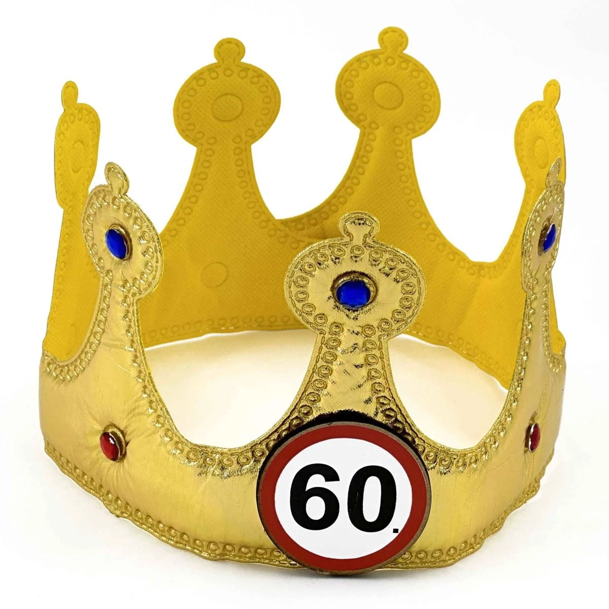 Születésnapi Party Kellék. A 60 karikás, arany színű korona kék és piros kövekkel díszítve lenyűgöző és különleges születésnapi kellék lesz! A tépőzáras kialakítás kényelmes viseletet biztosít, ami nagyszerű, mert senki sem szeretne egy kellemetlen fejdíszt viselni az ünneplés közepette. Egy ilyen dísz azonnal feldobja a születésnapi hangulatot és különlegessé teszi az ünneplést. A vendégek és az ünnepelt is imádni fogja.