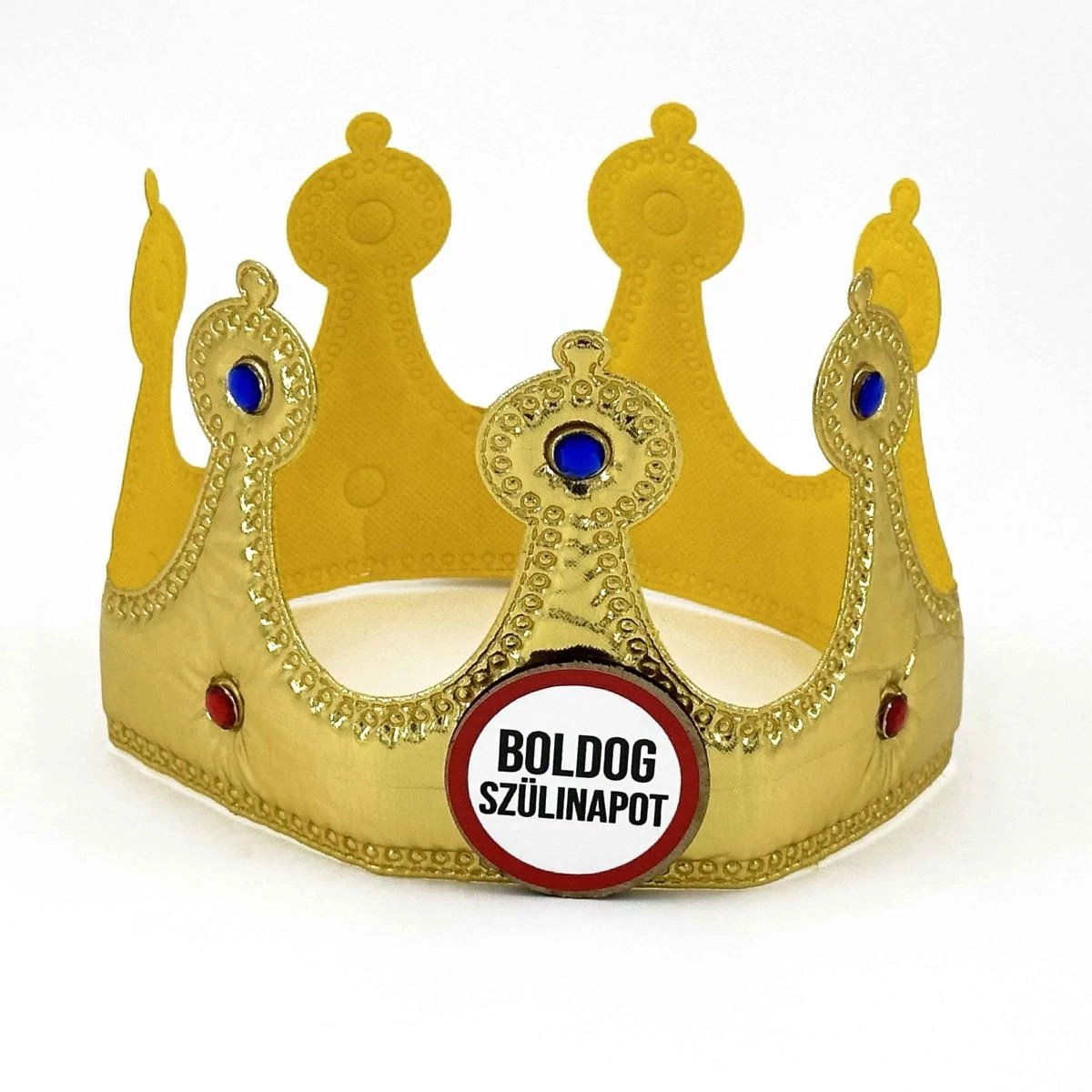 Születésnapi Party kellék. Az arany színű korona kék és piros kövekkel díszítve lenyűgöző és különleges születésnapi kellék lesz! A tépőzáras kialakítás kényelmes viseletet biztosít, ami nagyszerű, mert senki sem szeretne egy kellemetlen fejdíszt viselni az ünneplés közepette. Egy ilyen dísz azonnal feldobja a születésnapi hangulatot és különlegessé teszi az ünneplést. A vendégek és az ünnepelt is imádni fogja.