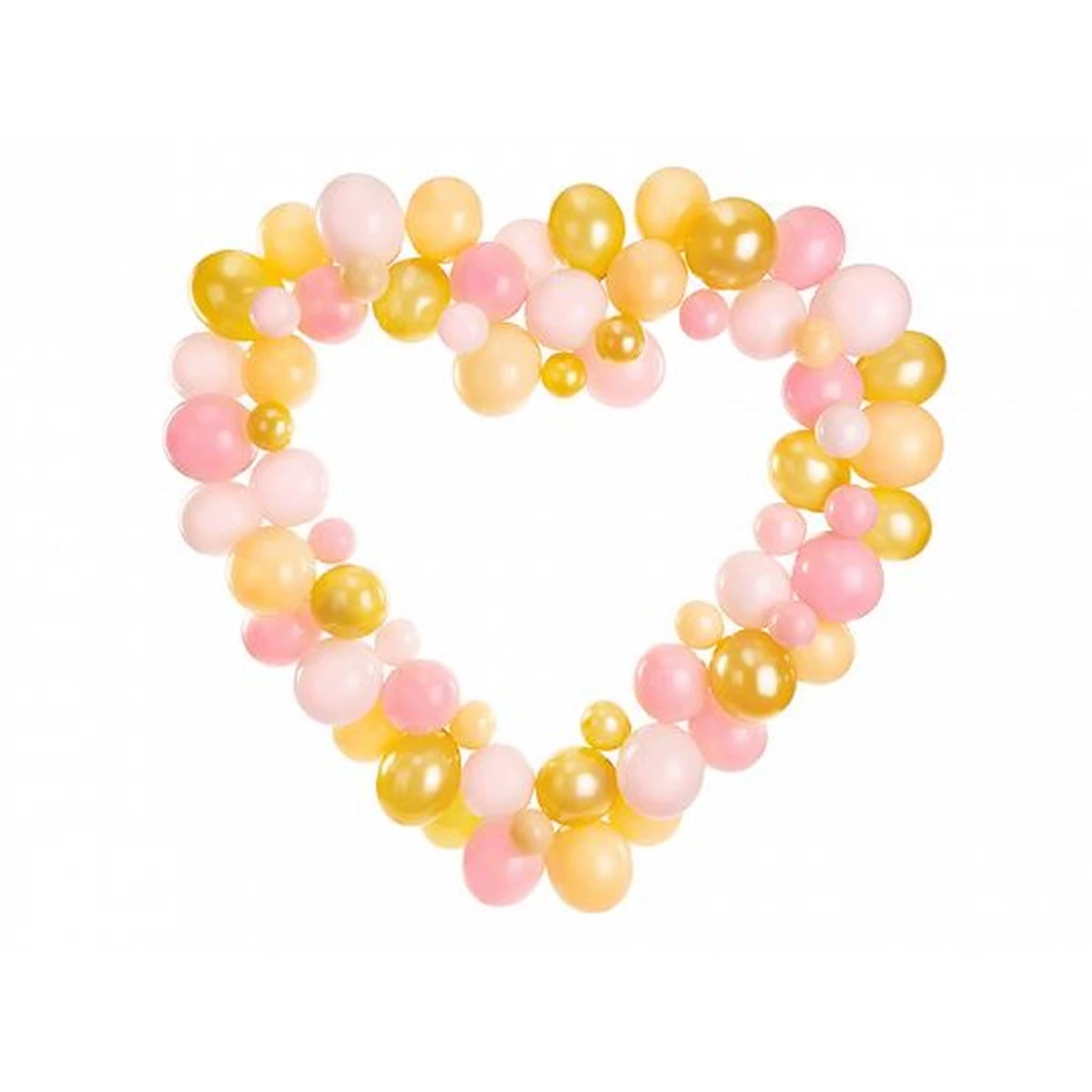 Rózsaszín lufifüzér kerettel Szív, a készlet 68 db lufit tartalmaz (17 db Pastel Pale Pink színben, 17 db Pastel Baby Pink színben, 17 db Pastel Light Peach színben, 17 db Me