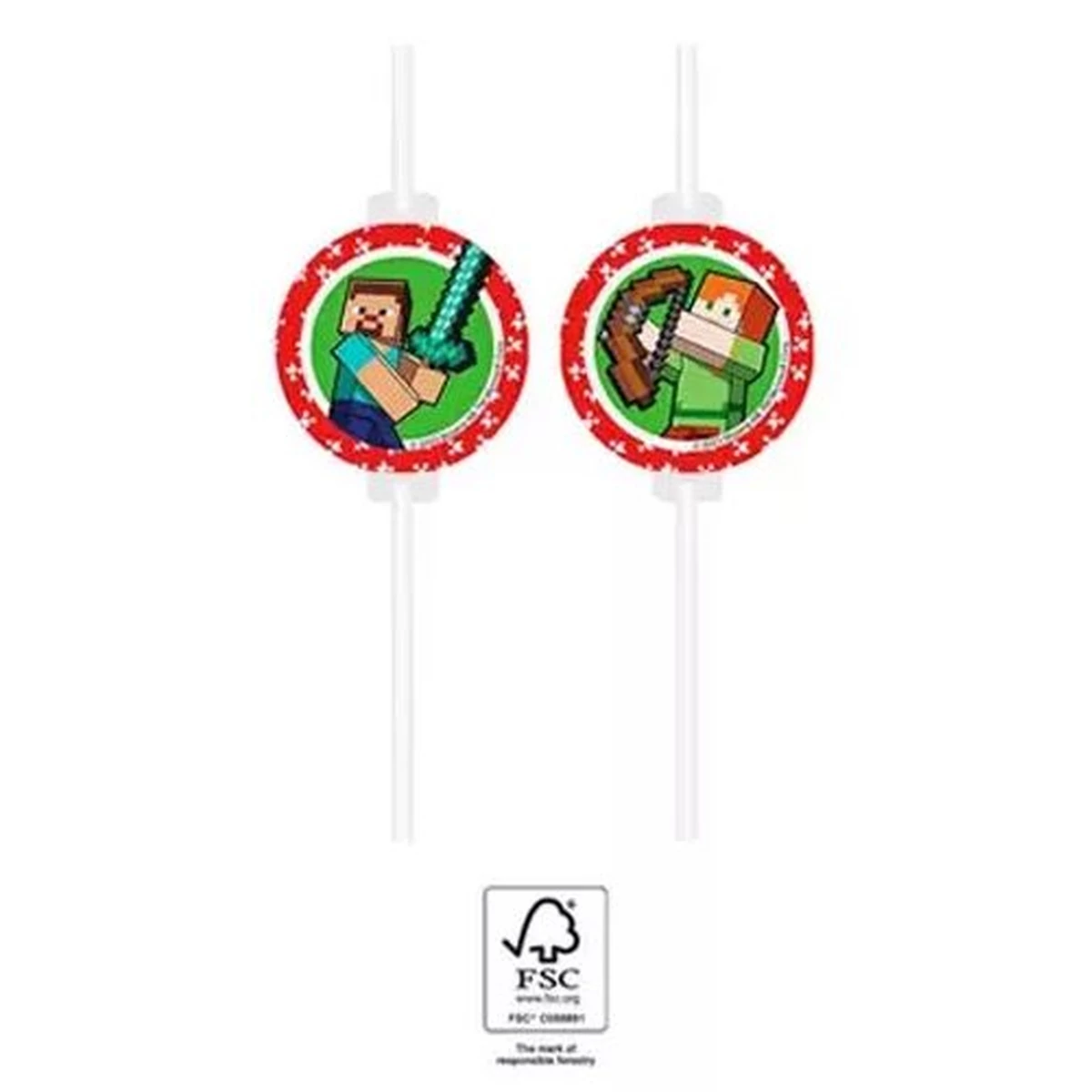 Minecraft Green papír szívószál, 4 db-os szett FSC