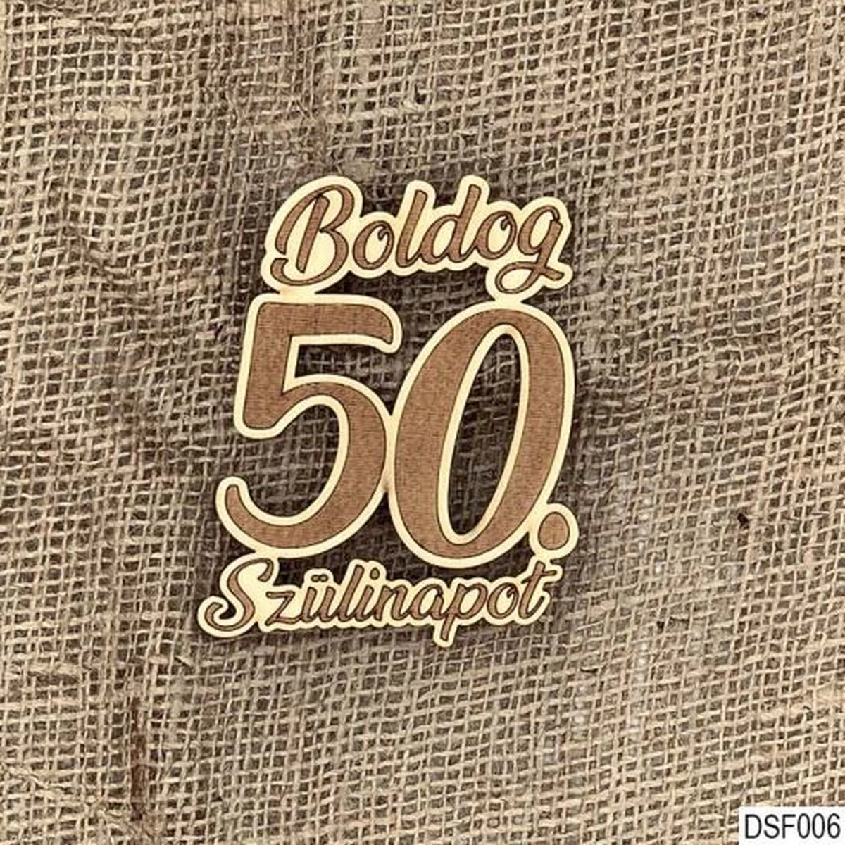 Fa dísz boldog 50. szülinapot felirat, mely dekoratívabbá teheti a saját dekorációnkat, a 50. szülinapi dekorációt.