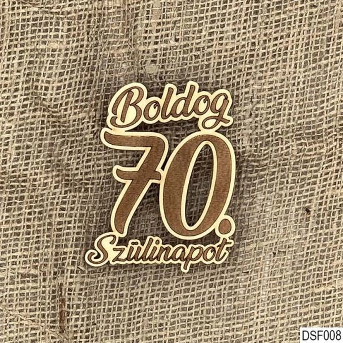 Fa dísz boldog 70. szülinapot felirat, mely dekoratívabbá teheti a saját dekorációnkat, a 70. szülinapi dekorációt.