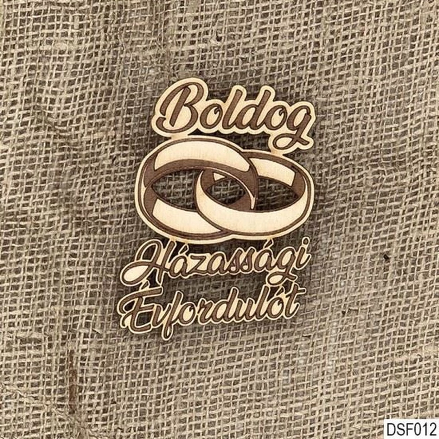 Fa dísz boldog házassági évfordulót felirat, mely dekoratívabbá teheti a saját dekorációnkat, az évfordulós dekorációt.