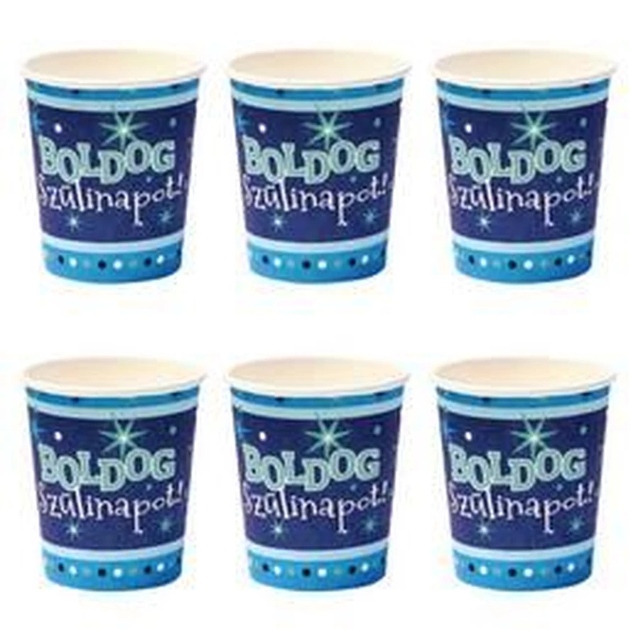 Kék színű Boldog Szülinapot feliratos papír parti pohár.