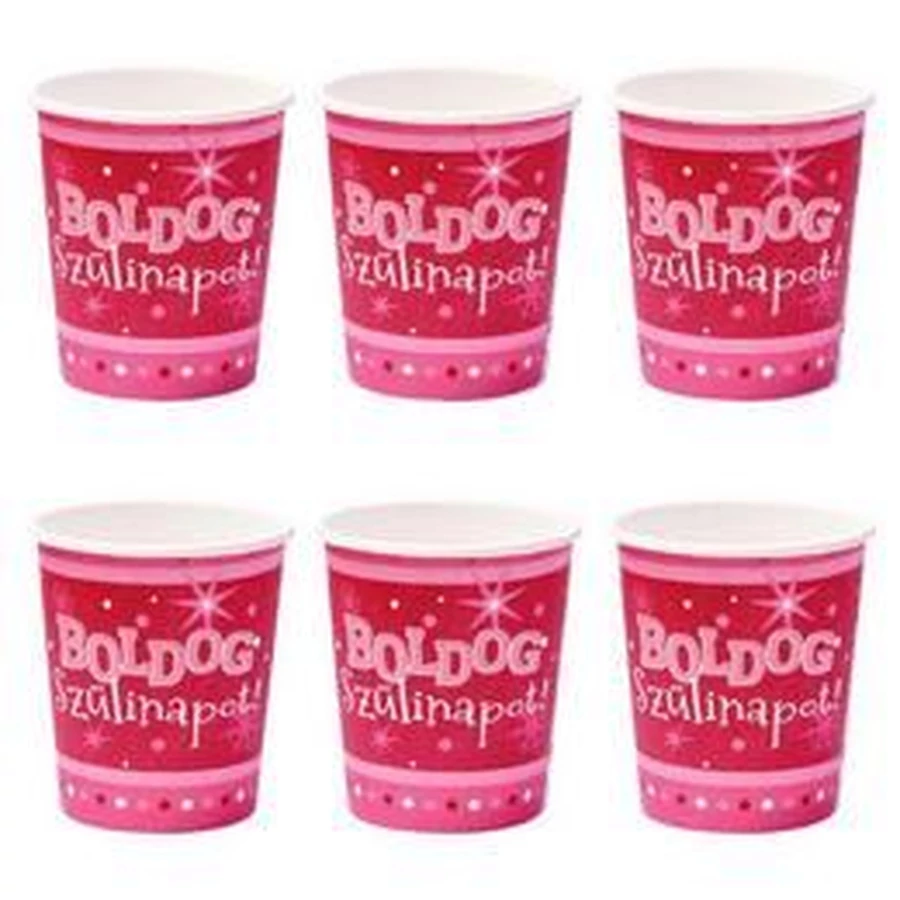 Rózsaszín színű Boldog Szülinapot feliratos papír parti pohár.