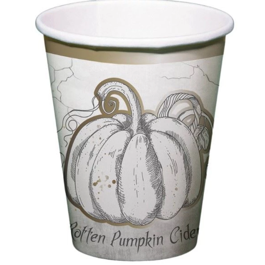Rohadt jó ital! Csészék - Hátborzongató érdekességek - 250 ml - 8 db. Tartalma: 8 csésze. Ezt a cikket a következő parti alkalma(k)hoz használhatja: Halloween, Theme party. Fehér papírpohár, gyönyörűen részletezett tök rajzával, igazán fényes arany részletekkel. A csészékre angolul van írva: "Rotten Pumpkin Cider". Ez jó móka lesz. Egészségére! Ez az elem papírból készült.