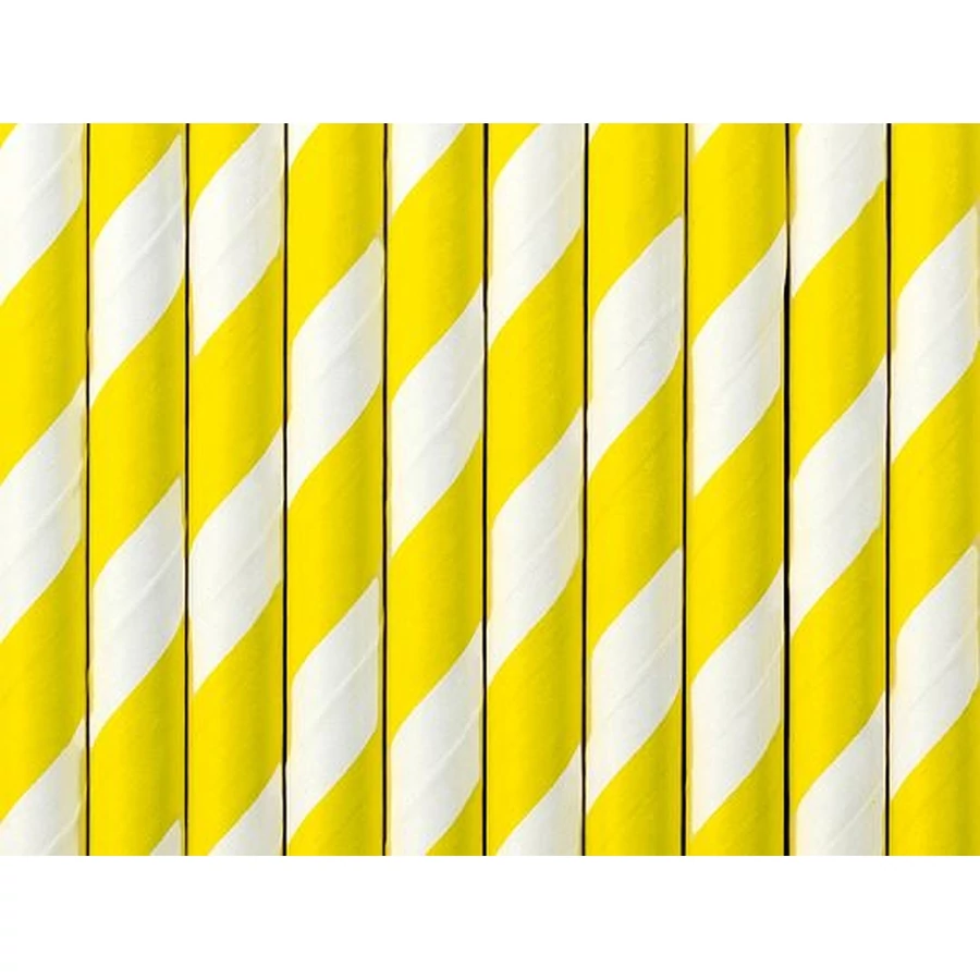 Papírszívószál - Csíkos, Sárga/Fehér, 10db