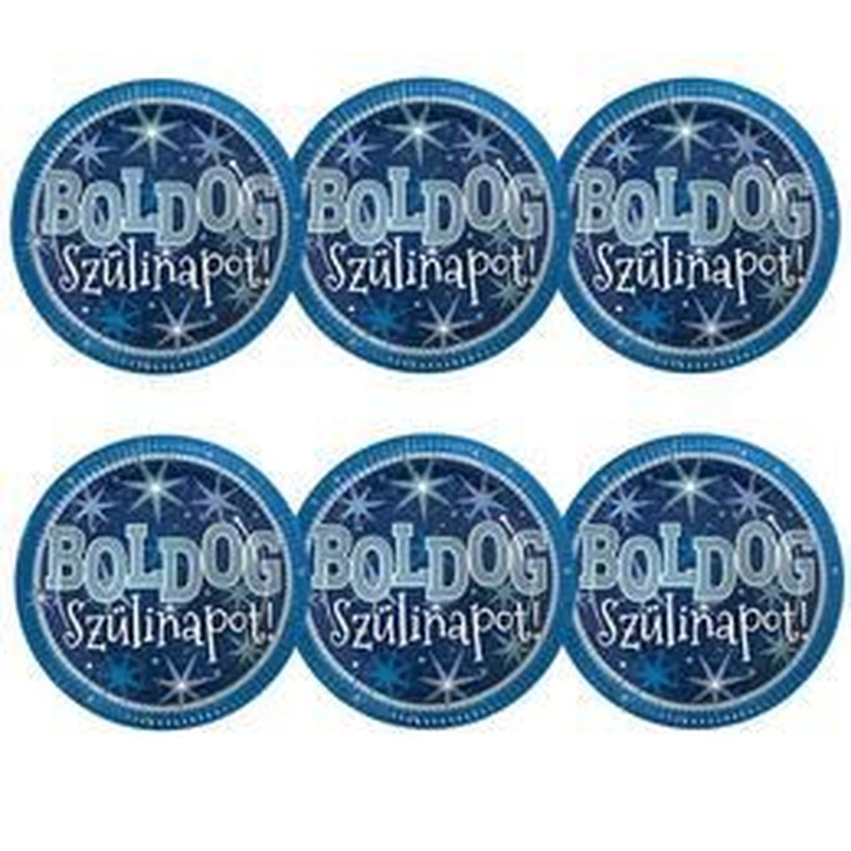 Kék színű Boldog Szülinapot feliratos papír parti tányér.