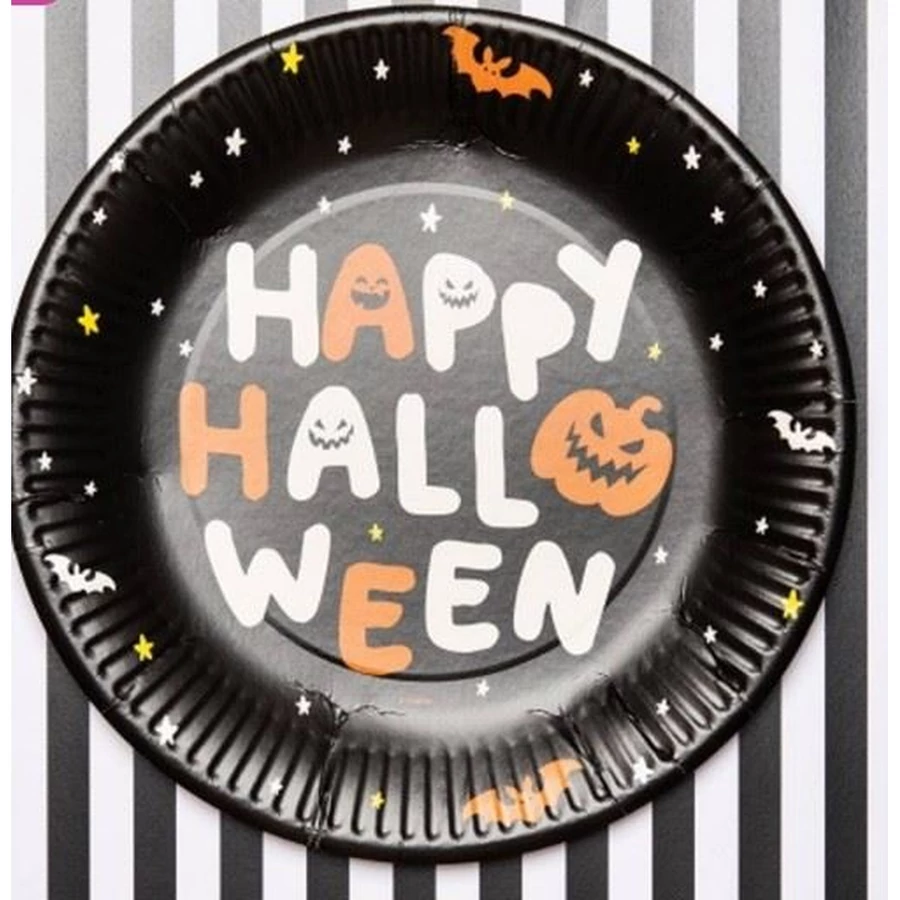 Túl félt enni? Tányérok 'Happy Halloween', Halloween BoOo!-val, 23 cm, 8 darab. Tartalma: 8 tányér. Ezt a cikket a következő parti alkalma(k)ra használhatod fel: Halloween. Bármilyen borzasztó is lesz a buli, ezek a Folat "Happy Halloween" feliratú eldobható (étel)tányérok némi vidámságot hoznak az asztalra. A tányérok átmérője 23 cm. Egy csomagban 8 tányér található. Ez az elem papírból van.