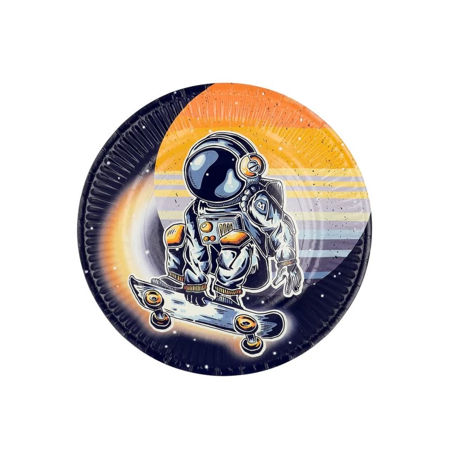 A menő űrhajós dizájnnal és élénk színekkel ez a 8 darab Space papírtányérból álló készlet azonnal felkelti a fiatal bulizók figyelmét.