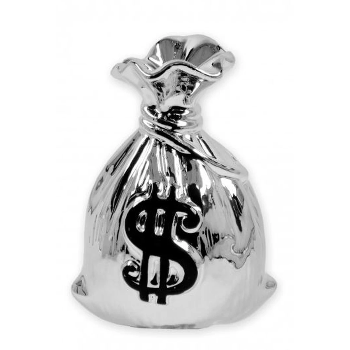 Pénzeszsák formájú persely. Ezüst és arany színben. 13 cm-es.