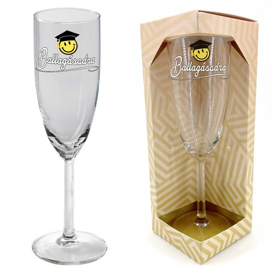 Ünnepelje a ballagást stílusosan ezzel az exkluzív, mintás pezsgőspohárral! Kiváló minőségű, áttetsző üvegből készült, ez a 21 cl-es pohár tökéletes választás ballagási ünnepséghez.