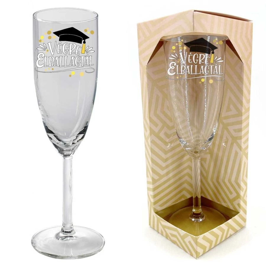 Ünnepelje a ballagást stílusosan ezzel az exkluzív, mintás pezsgőspohárral! Kiváló minőségű, áttetsző üvegből készült, ez a 21 cl-es pohár tökéletes választás a ballagási ünnepségre.