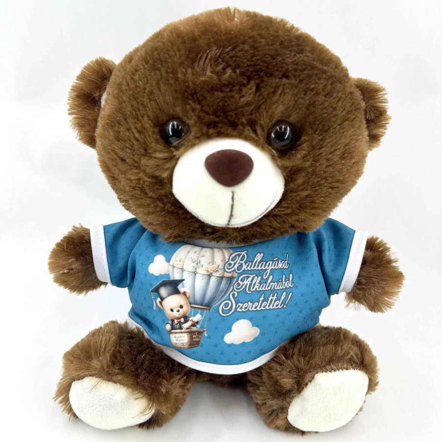 Plüss barna maci feliratos pólóval - Ballagásod Alkalmából Szertettel 25cm
