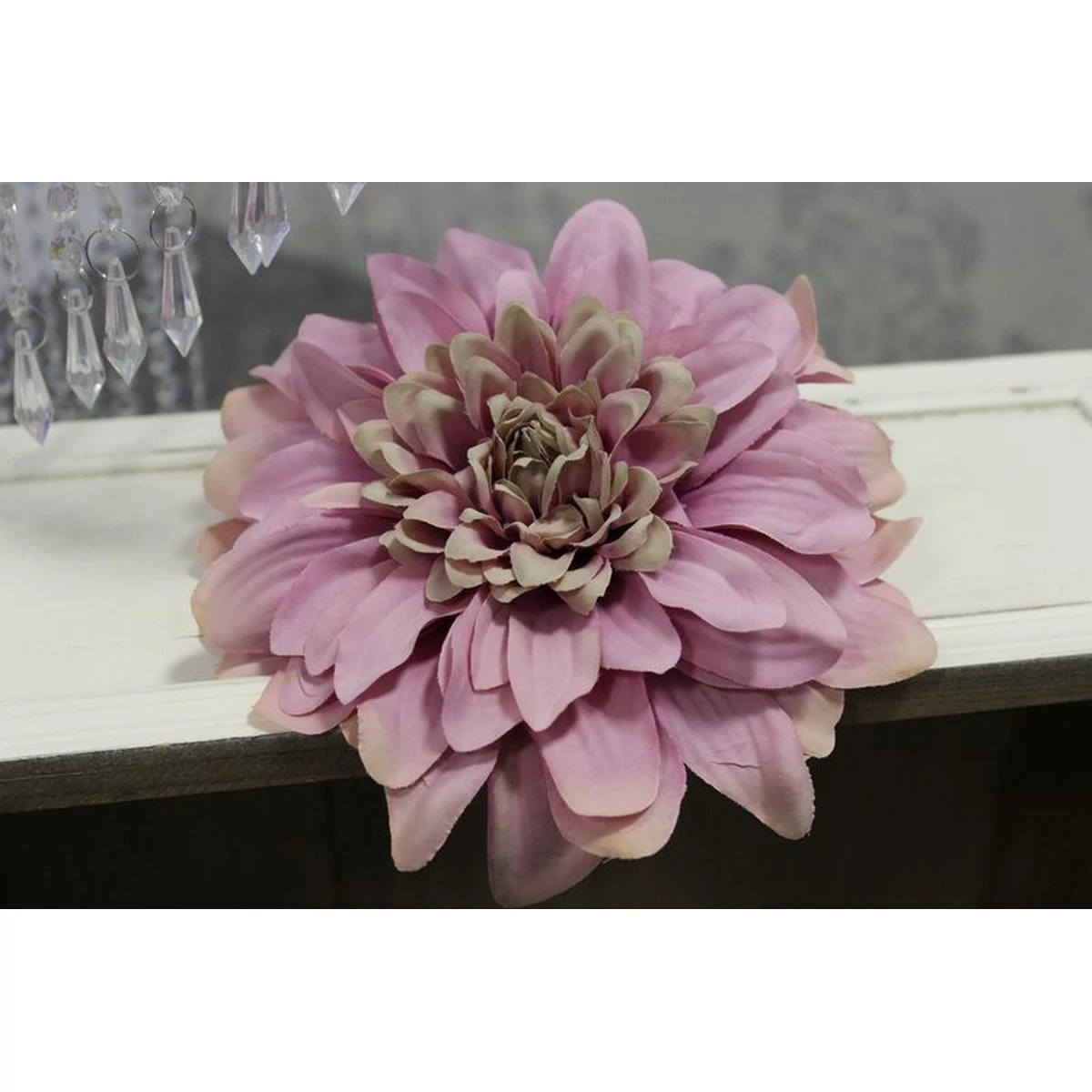 19 cm-es, mű dália fej, rózsaszín színű.