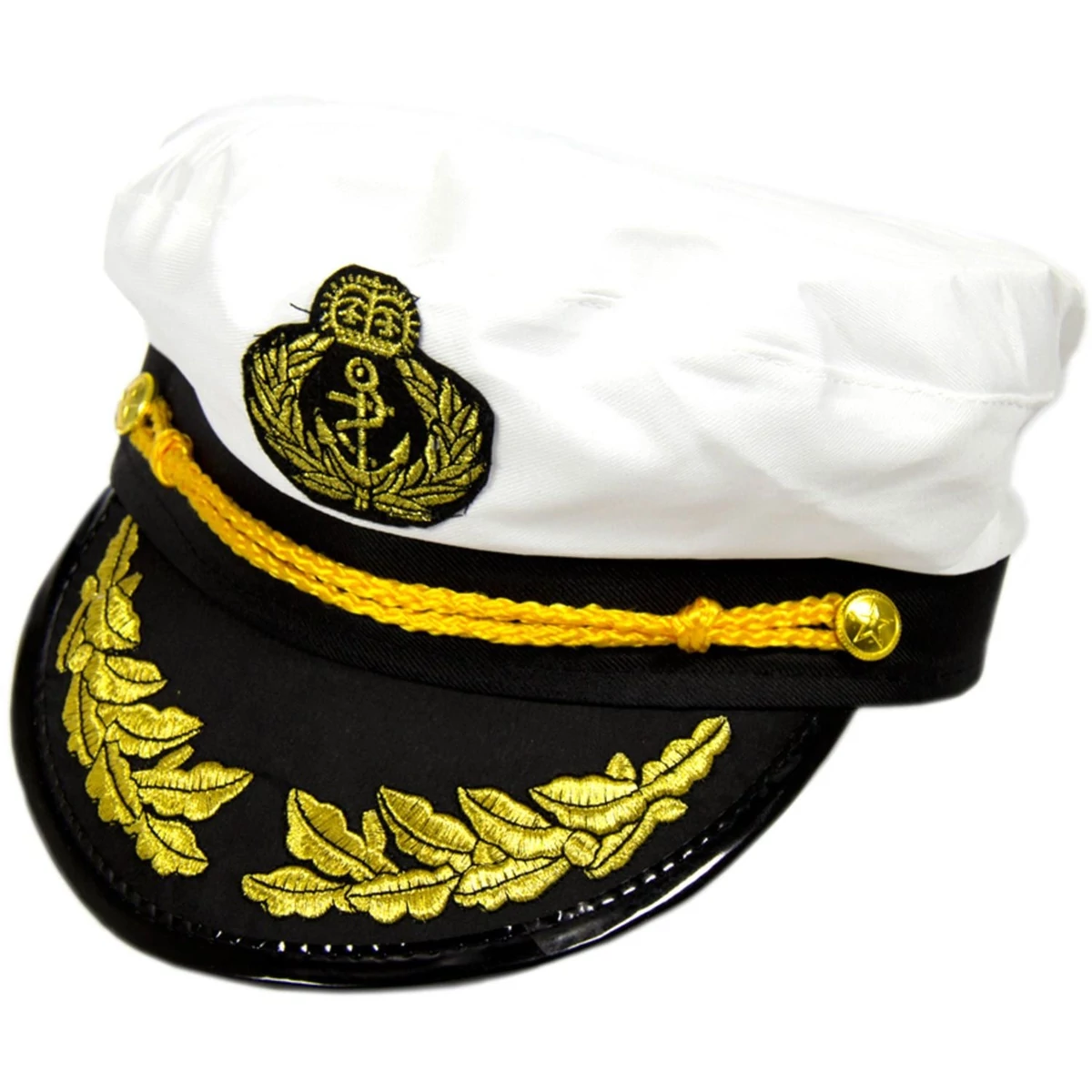 Hajóskapitány sapka. Fehér-kék színű, hímzett mintával.