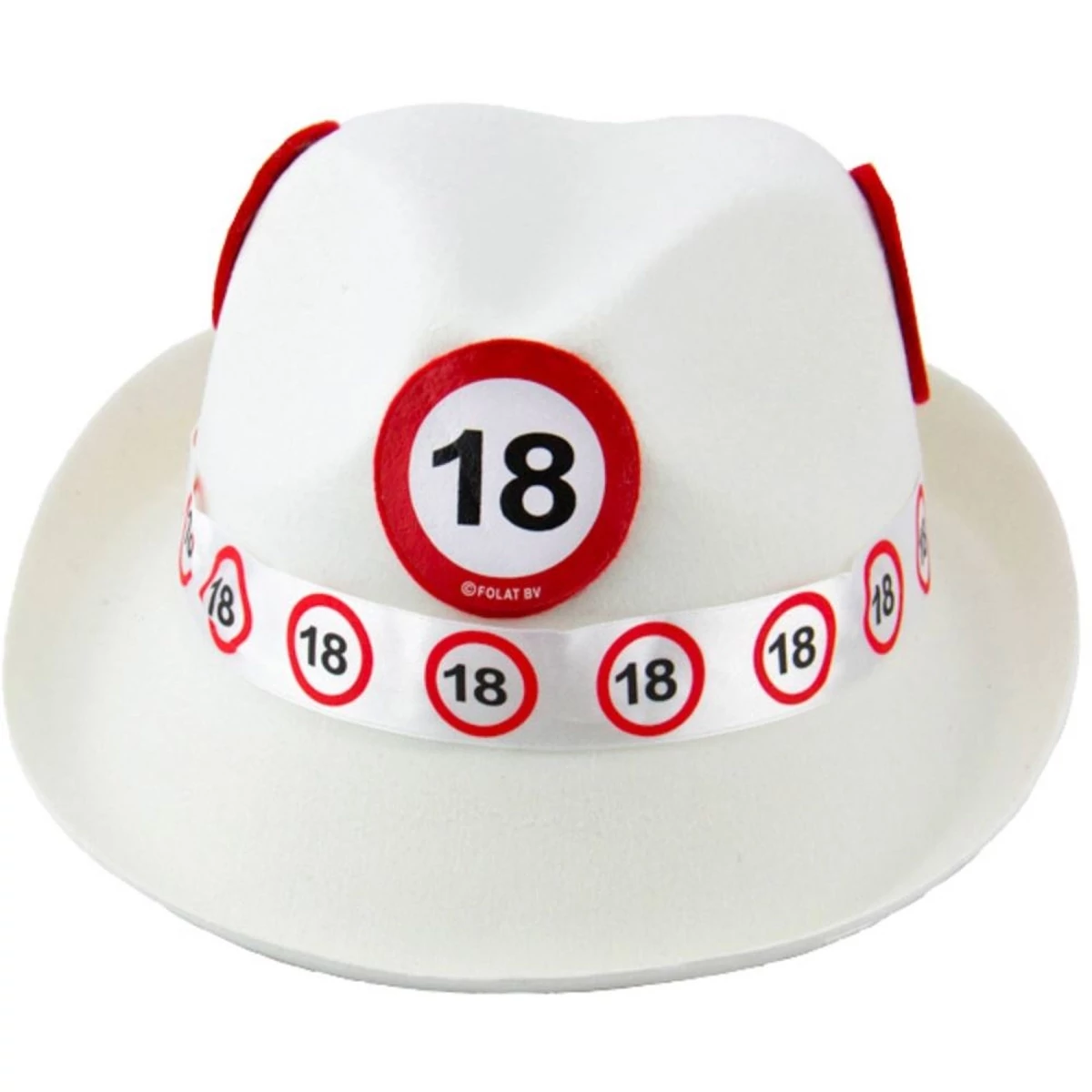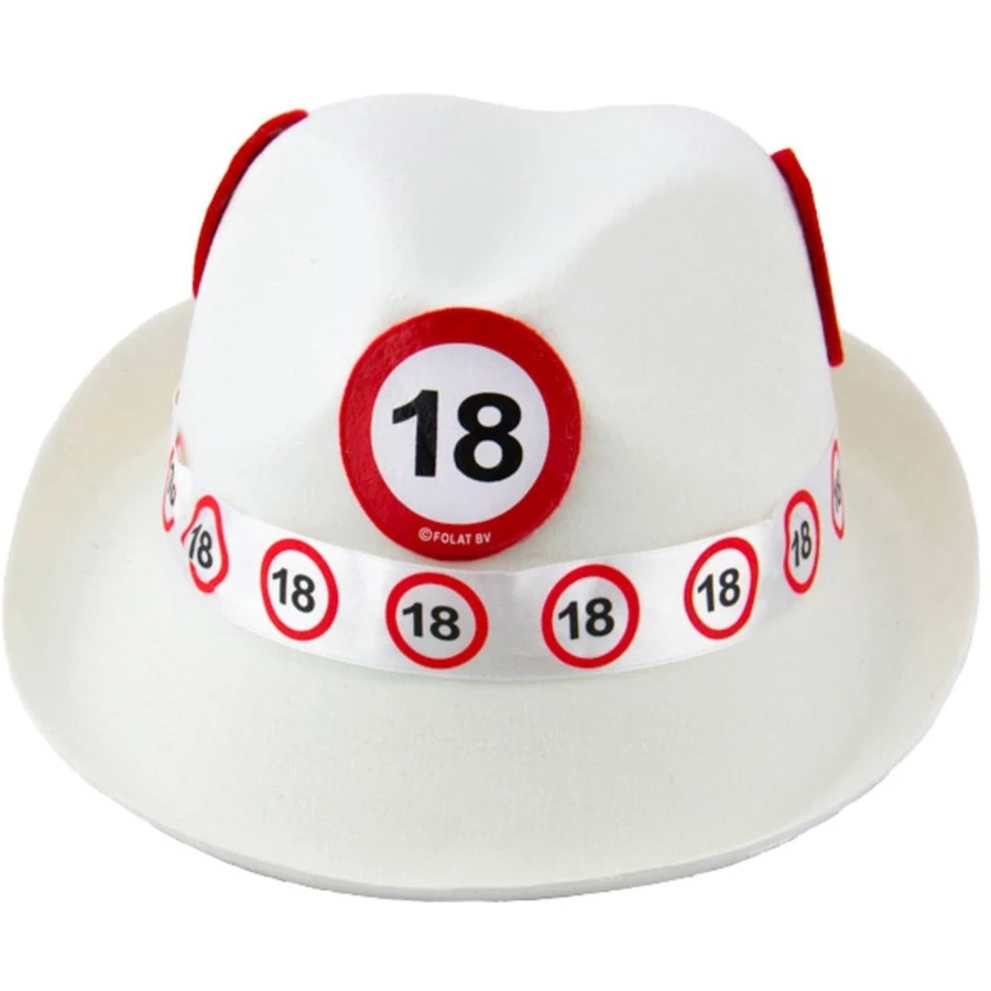 18. születésnapi fehér Trilby kalap közlekedési táblával.