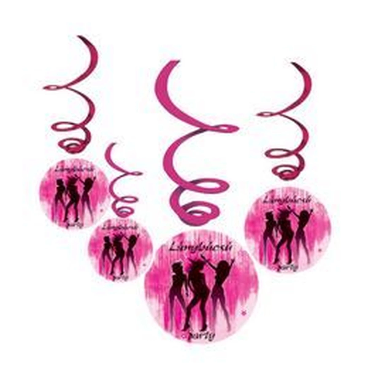 Lánybúcsúra való spirális függő dekoráció.