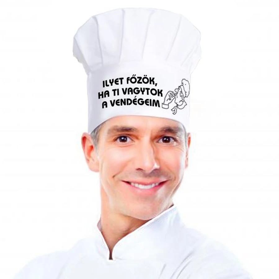 Az igazi szakács nem csak ízletes főztjével várja a vendégeit, hanem vendégszeretetével is. Ez a szakácssapka tréfásan hízeleg a vendégeknek, ám vigyázz, nehogy megtudják, hogy másoknak is felvetted!