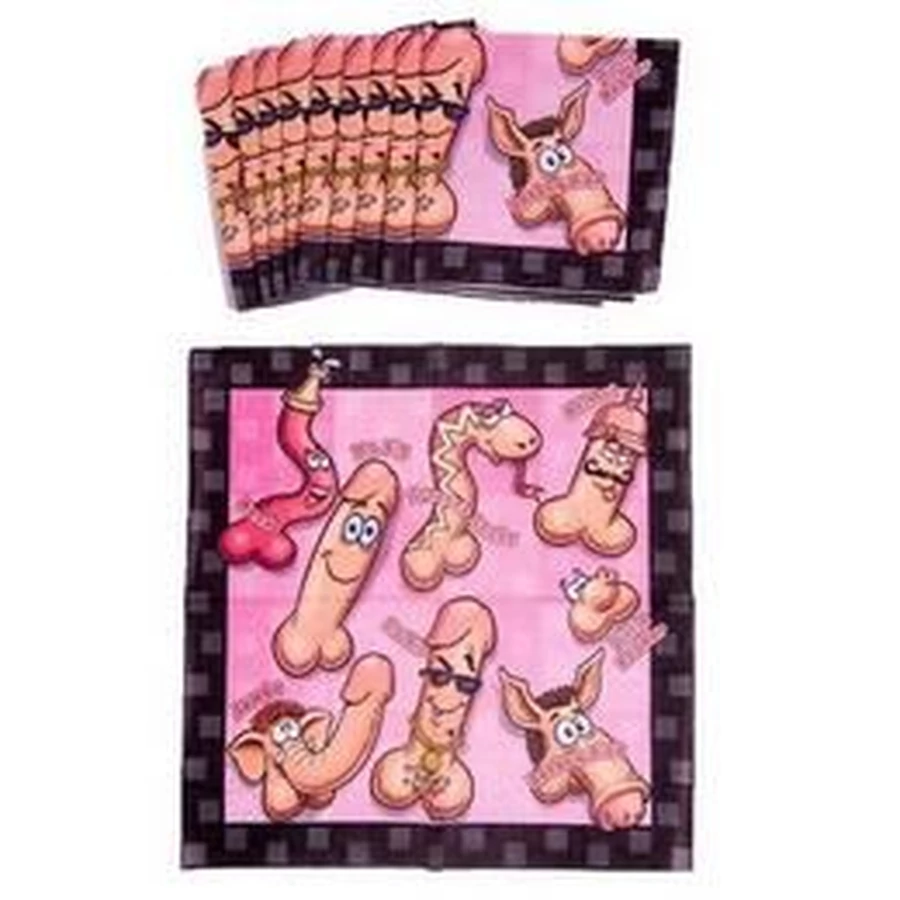 Willy/Fütyi/Pénisz/Fasz/Kukac Mintás Parti Szalvéta Lánybúcsúra - 33 cm x 33 cm, 10 db-os