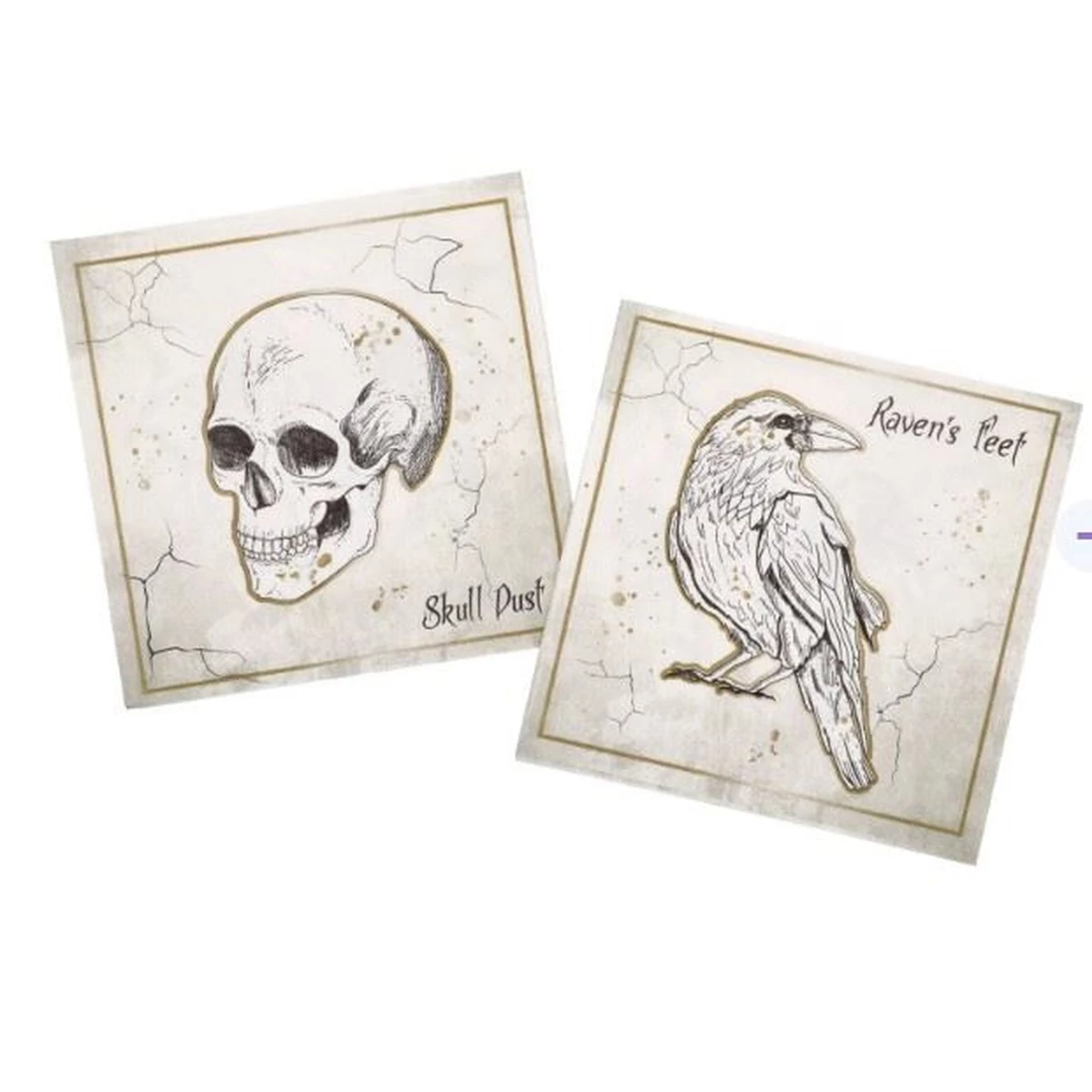 Valami hátborzongatóért. Szalvéta - Hátborzongató érdekességek - 33 x33 cm - 20 db. Tartalma: 20 db szalvéta. Ezt a cikket a következő parti alkalma(k)hoz használhatja: Halloween, Theme party. Kicsit ijesztő és nagyon szép is. Papírszalvéták 4 különböző kivitelben: Koponya "Kopolonya por" felirattal, denevér "Denevérvér", holló "Holló lábai", tök "Pumpkin Cider" felirattal. Mindezt rajzolt stílusban, gyönyörű részletekkel Ez az elem papírból készült.